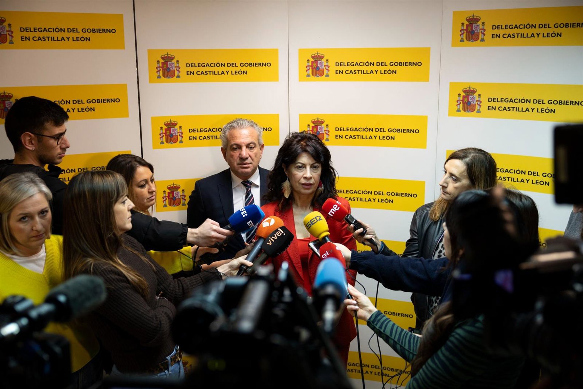 La ministra de Igualdad, Ana Redondo, junto al delegado del Gobierno en Castilla y León, Nicanor Sen, en Valladolid tras una reunión sobre violencia de género en la Comunidad. CLAUDIA ALBA-EUROPA PRESS