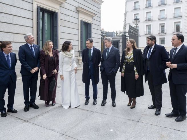 La ceremonia institucional se ha desarrollado en el Palacio del Congreso de los diputados, en la Carrera de San Jerónimo, donde Azcón ha coincidido con el presidente del PP, Alberto Núñez Feijóo, así como con distintos presidentes autonómicos del partido. Tras el saludo protocolario al presidente del Senado, Pedro Rollán, y a la presidenta del Congreso, Francina Armengol, ha participado en los actos oficiales organizados en la Cámara Baja.