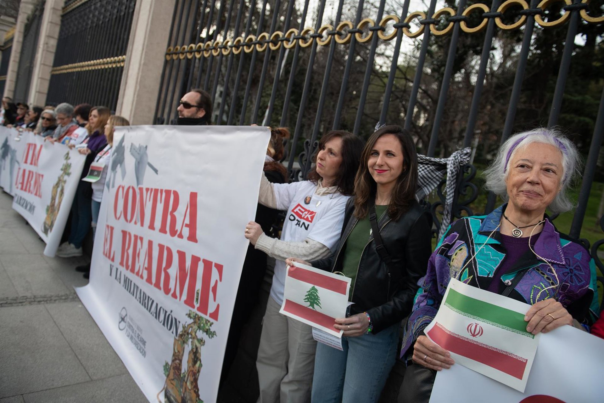 Belarra ha defendido que el lema del Gobierno de “No a la Guerra” debe sostenerse en “medidas concretas que realmente sirvan para proteger a nuestro país y también esas medidas de protección económica y social”, según ha declarado a los medios durante una concentración convocada bajo el eslogan 'No a la OTAN' frente al Cuartel General del Ejército de Tierra en Madrid.