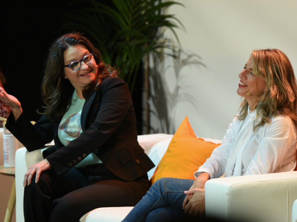 La vicepresidenta de la Generalitat Valenciana, Mónica Oltra (i), y la vicepresidenta del Gobierno, Yolanda Díaz, en el acto Otras Políticas, a 13 de noviembre de 2021, en Valencia, Comunidad Valenciana, (España). Jorge Gil - Europa Press