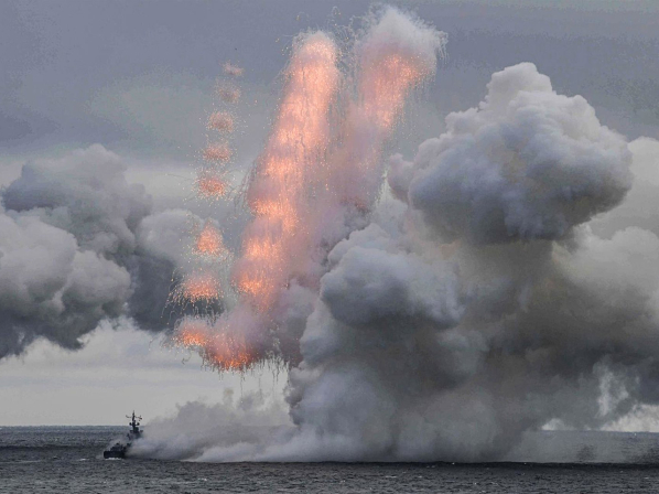 Un buque de guerra ruso participa en unas pruebas de lanzamiento de misiles con capacidad nuclear Kinzhal y Kalibr en aguas del mar Negro cerca de la península de Crimea Alexei Druzhinin/Kremlin/dpa