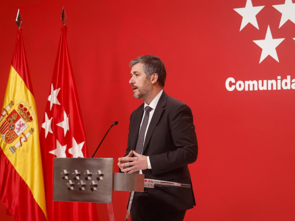 El consejero de Presidencia, Justicia y Administración Local de la Comunidad de Madrid, Miguel Ángel García Martín, en una rueda de prensa tras el Consejo de Gobierno. COMUNIDAD DE MADRID