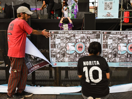 Varias personas durante la vigilia por el 50 aniversario del golpe de Estado en Argentina, a 23 de marzo de 2026, en Buenos Aires (Argentina). Sebastián Hipperdinger - Europa Press