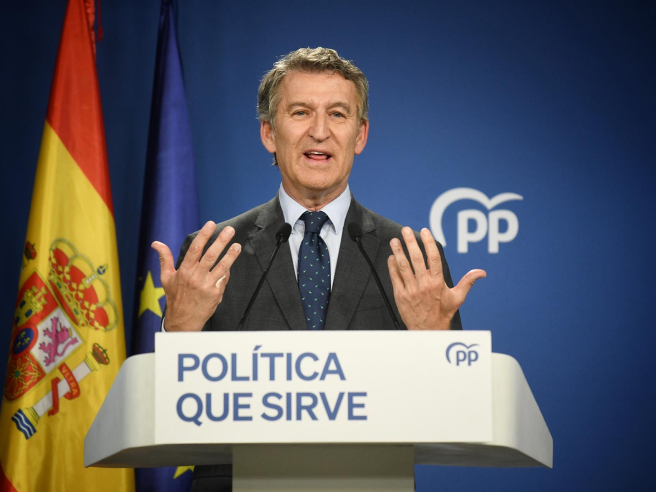 El presidente del Partido Popular, Alberto Núñez Feijóo, durante una rueda de prensa, en la sede del PP en Génova, a 12 de junio de 2025, en Madrid (España). Fernando Sánchez - Europa Press