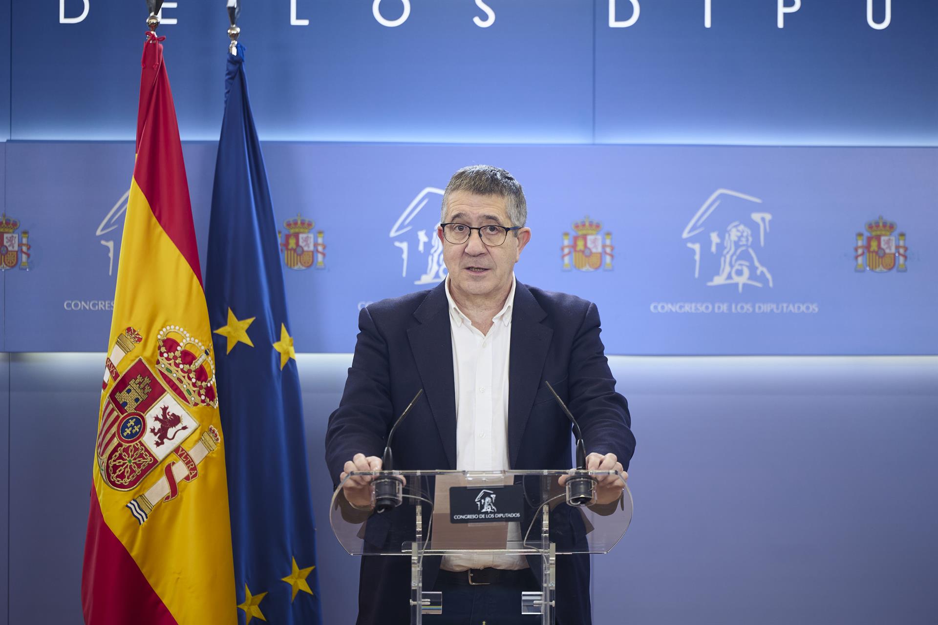 El portavoz del PSOE en el Congreso, Patxi López, durante una rueda de prensa, en el Congreso de los Diputados, a 24 de marzo de 2026, en Madrid (España). Jesús Hellín - Europa Press
