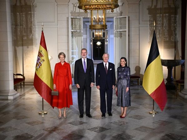 Este martes, los Reyes Felipe VI y Letizia fueron acogidos en el Palacio Real de Bruselas por los monarcas belgas, Felipe y Matilde, en un encuentro marcado por la celebración de la trigésima edición del festival Europalia, este año dedicado a España.