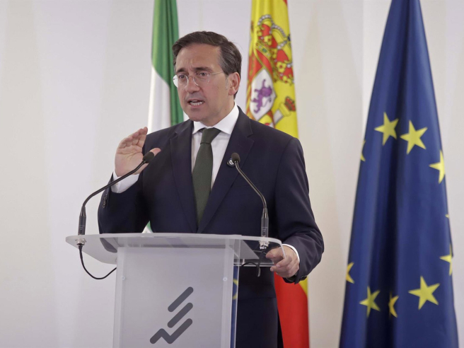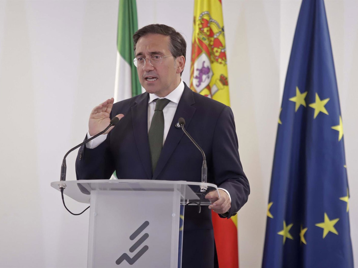 El ministro de Asuntos Exteriores, Unión Europea y Cooperación, José Manuel Albares, ofrece una rueda de prensa a 23 de abril de 2026 en Algeciras, Cádiz (Andalucía, España). Nono Rico / Europa Press