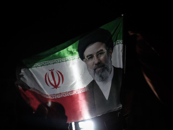 Una bandera iraní con la imagen del nuevo líder supremo, Mojtada Jamenei Saeid Zareian/dpa