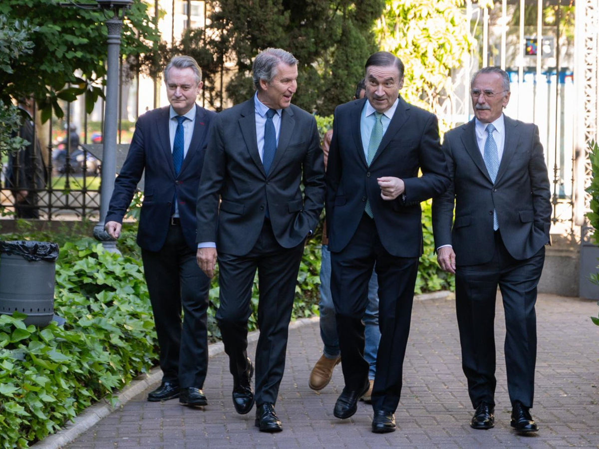 El presidente del PP, Alberto Núñez Feijóo, y el director de El Español, Pedro J. Ramírez, durante el VI Foro Económico ‘Wake Up, ¡Spain!, Wake Up Europe!’, organizado por El Español, a 16 de abril de 2026, en Madrid (España).  Isa Saiz - Europa Press