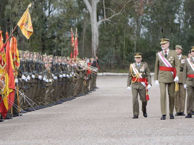 El Rey Felipe VI ha encabezado este sábado, 24 de enero, la jura de bandera celebrada en el Centro de Formación de Tropa (Cefot n.º 1) de Cáceres, un acto al que han acudido unas 9.000 personas entre representantes institucionales, mandos del Ejército y familiares de los 1.378 alumnos, de los que 192 son mujeres, que han completado la fase inicial de su instrucción castrense iniciada en noviembre en el Acuartelamiento Santa Ana de la capital cacereña.