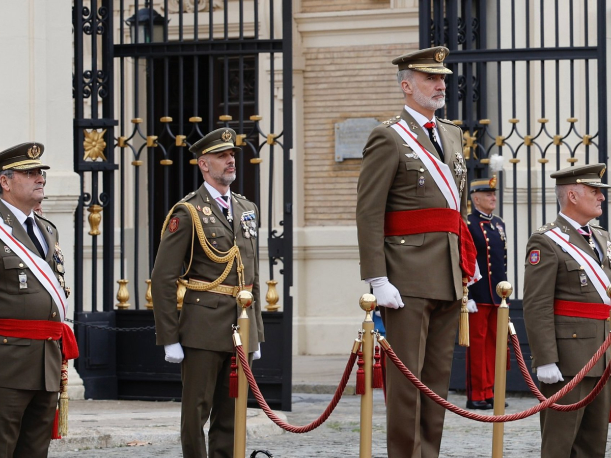 El Rey Felipe VI participa en el 40 aniversario de la jura de la bandera de la XLV promoción de la Academia General Militar, a 15 de noviembre de 2025, en Zaragoza. Casa de S.M. el Rey