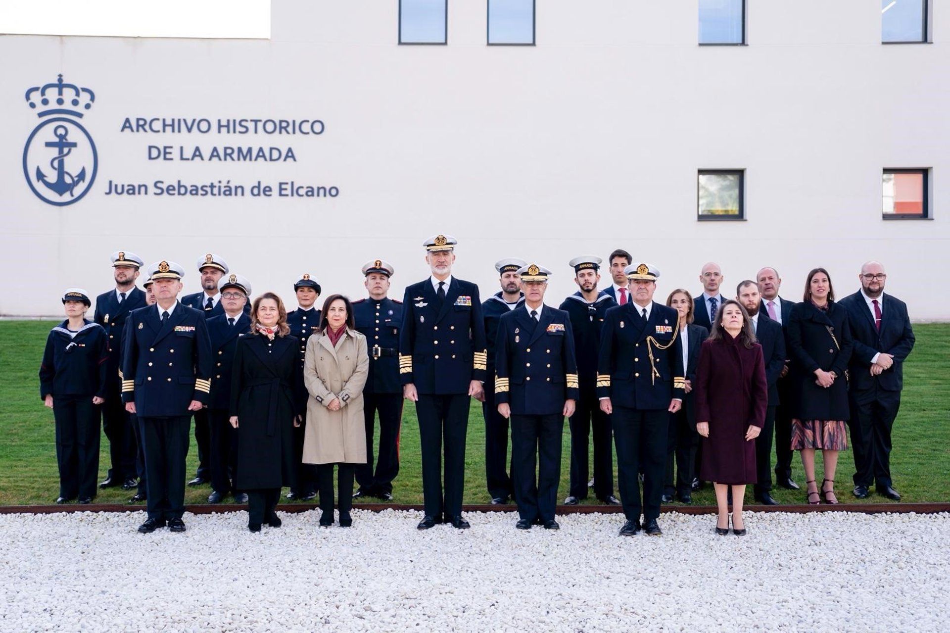 Durante el recorrido, Felipe VI estuvo acompañado de figuras destacadas como la ministra de Defensa, Margarita Robles; el Almirante Jefe del Estado Mayor de la Armada (AJEMA), almirante general Antonio Piñeiro; el director del Instituto de Historia y Cultura Naval, vicealmirante Enrique Torres Piñeyo; y el director del Archivo, el capitán de navío Joaquín Vegara. El rey ha explorado el área de gestión de fondos y depósitos, donde tuvo la oportunidad de examinar algunos legajos importantes.