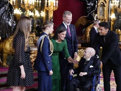 Don Felipe y Doña Letizia, junto a sus hijas, ofrecieron una calurosa bienvenida a figuras como Miguel Herrero de Miñón y el escritor Álvaro Pombo, destacado por su reciente premio Cervantes y su delicada salud. Tras la ceremonia de bienvenida, la Familia Real disfrutó de un cóctel donde las jóvenes princesas captaron gran parte de la atención. Mientras Don Felipe interactuaba con los invitados, Doña Letizia permanecía cerca de sus hijas, en especial de la Infanta Sofía, que asistía por primera vez.