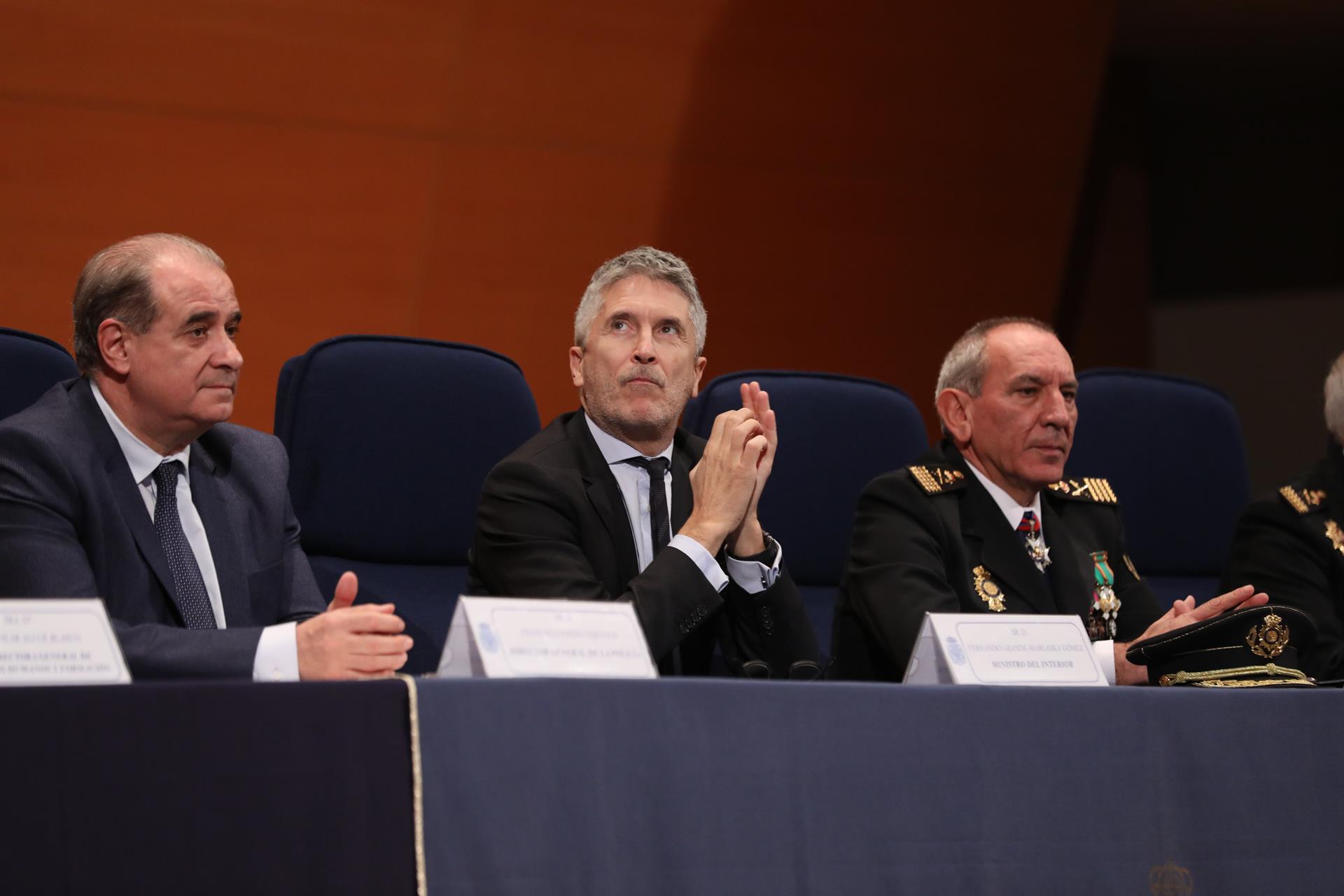 El director general de la Policía Nacional, Francisco Pardo, el ministro del Interior, Fernando Grande- Marlaska, y el director adjunto operativo de la Policía Nacional, José Ángel González Marta Fernández - Europa Press