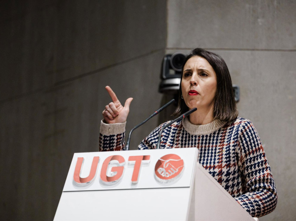 La secretaria política de Podemos, Irene Montero, interviene durante un mitin del Polo Democrático en la sede de la UGT, a 7 de enero de 2026, en Madrid (España). Carlos Luján - Europa Press