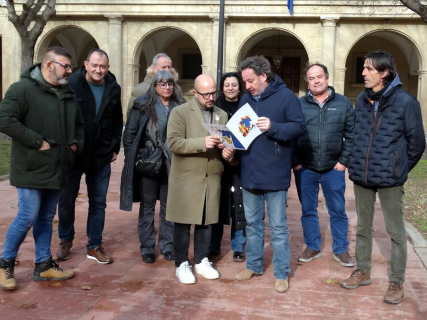Los candidatos del PAR Alberto Izquierdo y María Ángeles Roca, junto a otros miembros de la lista, en la ciudad de Huesca. PARTIDO ARAGONÉS