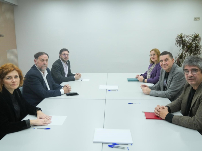 Las cúpulas de ERC y EH Bildu, lideradas respectivamente por el presidente de los republicanos, Oriol Junqueras, y el secretario general de EH Bildu, Arnaldo Otegi, han celebrado este martes por la mañana una reunión en la sede de ERC en Barcelona.