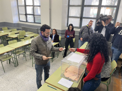 Miguel Ángel LLamas en el momento de depsositar su voto este domingo en un colegio electoral de Zamora. EUROPA PRESS