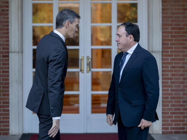 El presidente del Gobierno, Pedro Sánchez (i), y el presidente de la Generalitat valenciana, Juanfran Pérez Llorca (d), durante una reunión, en el Palacio de La Moncloa, a 17 de diciembre de 2025. Alberto Ortega - Europa Press