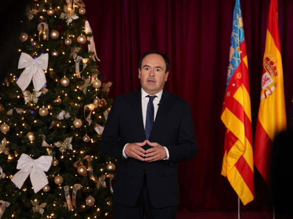 Este mensaje de Fin de Año, el primero que pronuncia como jefe del Consell tras la renuncia de Carlos Mazón, lo ha ofrecido desde la sede del Consejo Regulador de la D.O Utiel-Requena, en el municipio de Utiel. Ha comenzado su intervención recordando a las víctimas y damnificados por la dana, a quienes ha reiterado el compromiso de la Generalitat “con hechos y recursos” para que la recuperación “sea completa”. “Estoy decidido a que ningún vecino vuelva a pasar miedo cuando llueva, y para ello hablaré y colaboraré con todas las administraciones públicas, sean del color político que sean”.