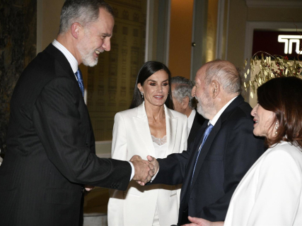 (I-D) El Rey Felipe, la Reina Letizia, el periodista Diego Carcedo y la periodista Cristina García Ramos en una foto de archivo. José Oliva - Europa Press