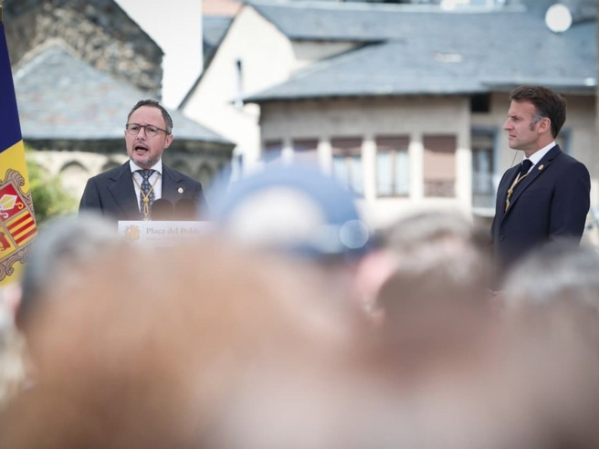 Macron presiona a Andorra para que acepte el acuerdo con la UE mientras las protestas por la vivienda estallan durante el discurso de Xavier Espot.