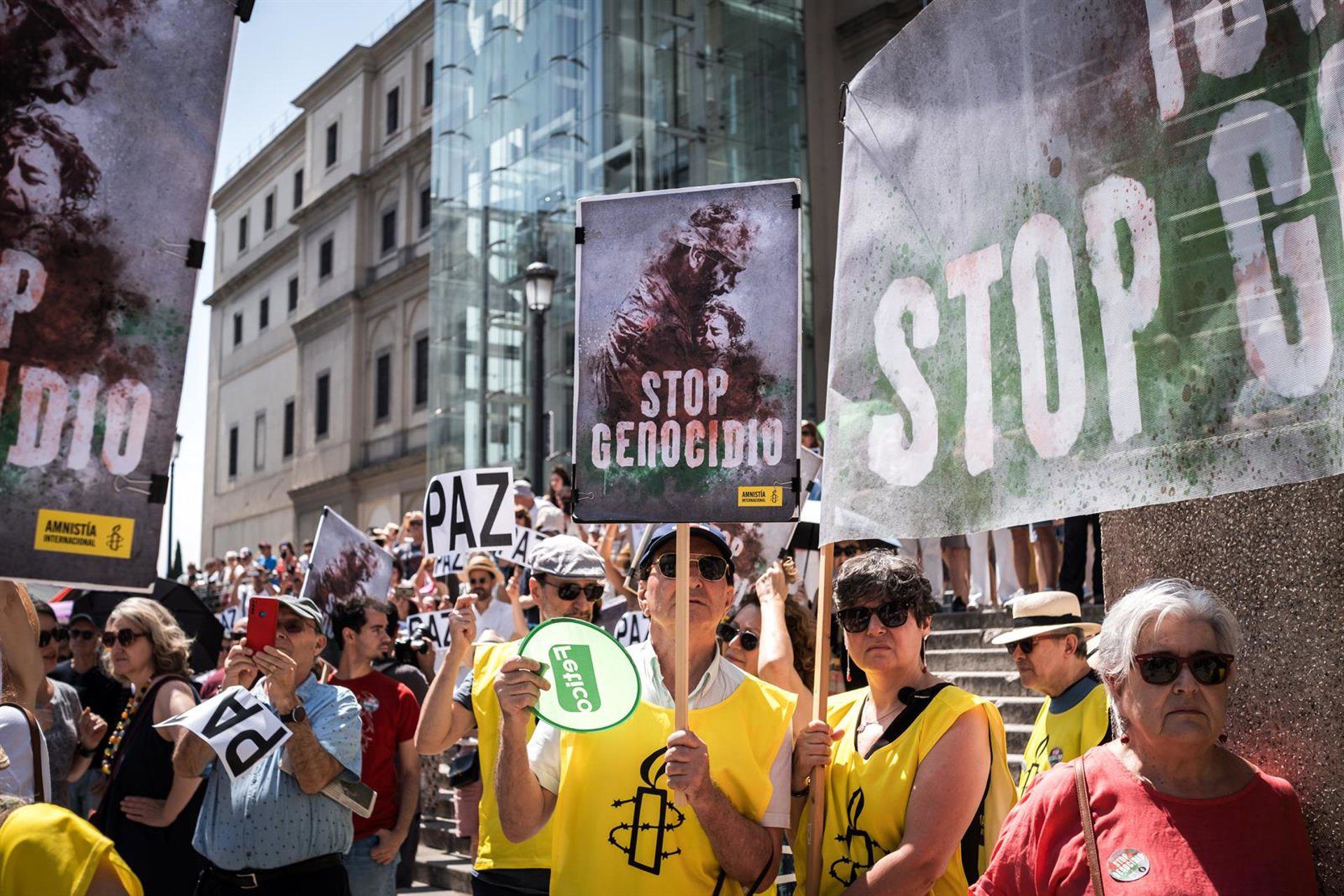Este sábado 12 de julio, el movimiento PararLaGuerra.es se congregó en la Plaza de Callao en Madrid, para exigir ‘el fin del genocidio en Palestina’. La protesta estuvo marcada por la presencia de banderas palestinas y el eco de cánticos que proclamaban: ‘No es una guerra, es un genocidio’.