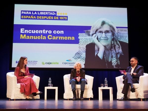 Durante su visita a la Universidad de La Laguna, Carmena destacó el valor del diálogo con el estudiantado. “Me encanta que me entreviste el alumnado, me parece muy buena idea. Y además me encanta hacerlo en la universidad pública, la que es de todos”, afirmó la abogada y activista, que evocó sus años de formación universitaria, iniciados en 1961, una etapa que, recordó, le permitió descubrirse a sí misma.