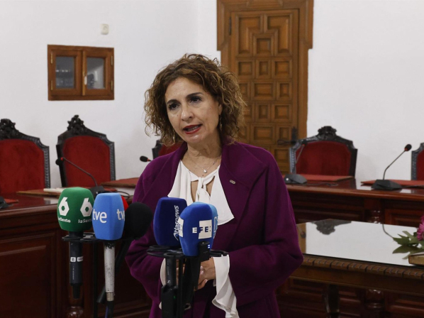 La vicepresidenta primera del Gobierno, María Jesús Montero, atiende a los medios en Montoro (Córdoba). MADERO CUBERO/EUROPA PRESS