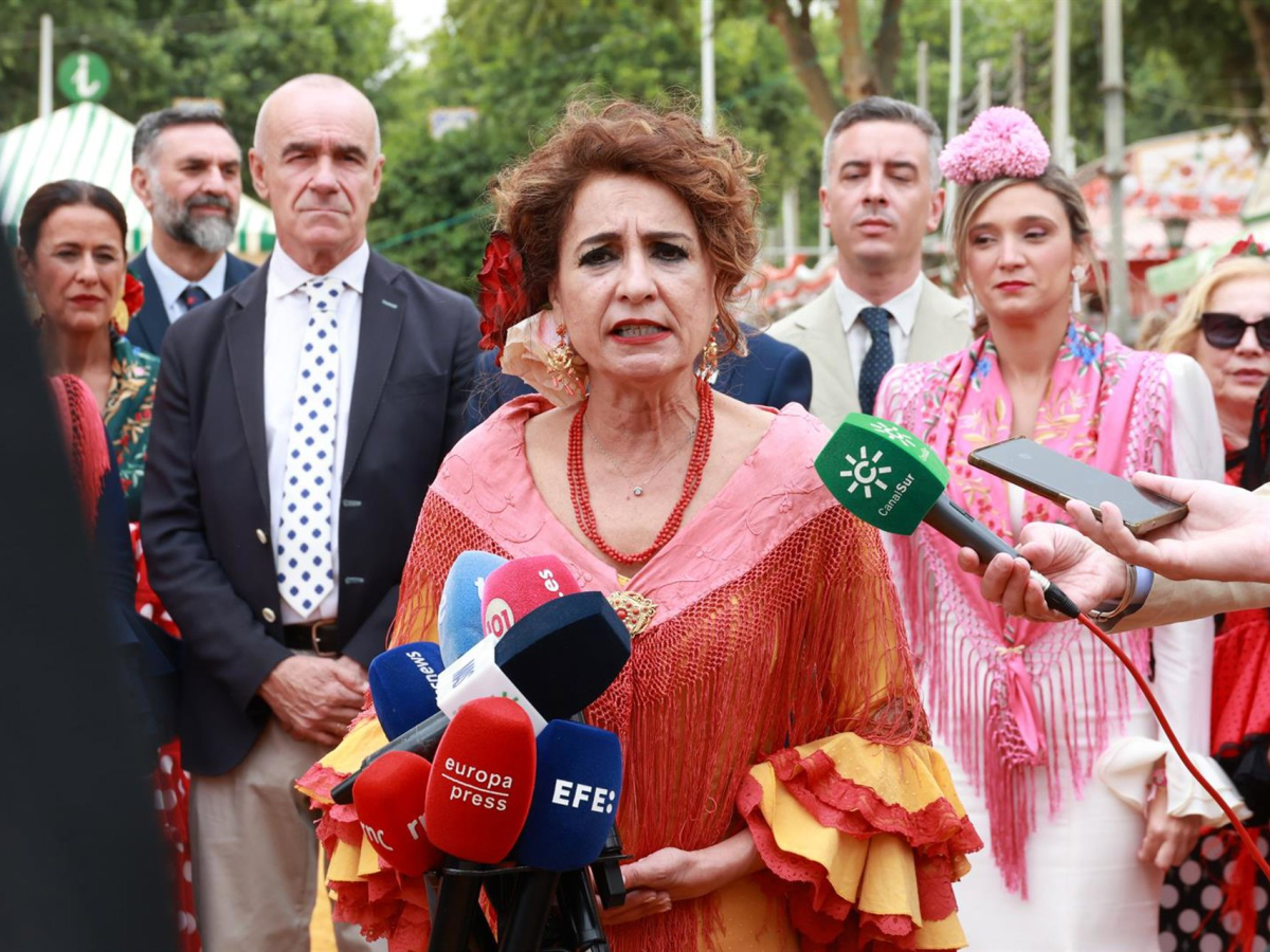 La secretaria general del PSOE-A, María Jesús Montero, atiende a los medios en la Feria de Sevilla. ROCÍO RUZ/EUROPA PRESS