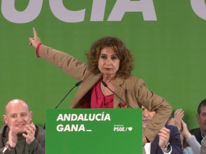 La secretaria general del PSOE-A, María Jesús Montero, ha reivindicado este sábado el 28 de febrero, Día de Andalucía, como una fecha para la movilización y la defensa de derechos, en contraste con lo que define como "política de escaparate" del PP de Juanma Moreno. En esta línea, ha exigido "menos fotos y más gestión, más hacer cosas y menos aparentar permanentemente que se hace algo cuando, en definitiva, se abandona a la gente".