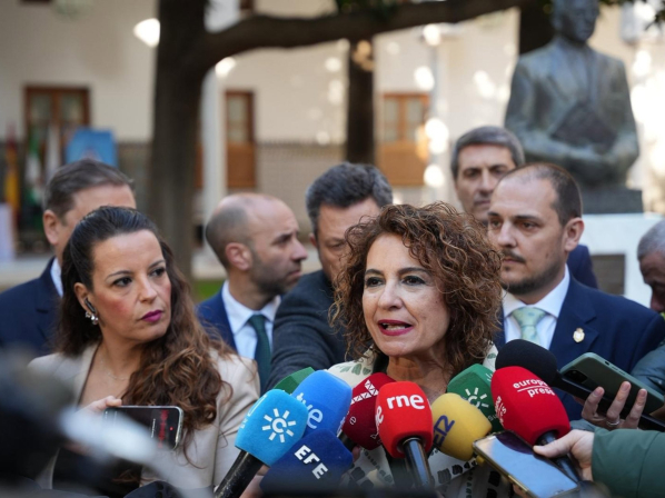 La vicepresidenta primera del Gobierno y secretaria general del PSOE-A, María Jesús Montero, atiende a los medios antes del Pleno institucional en el Parlamento con motivo del 28F MARÍA JOSÉ LÓPEZ/EUROPA PRESS