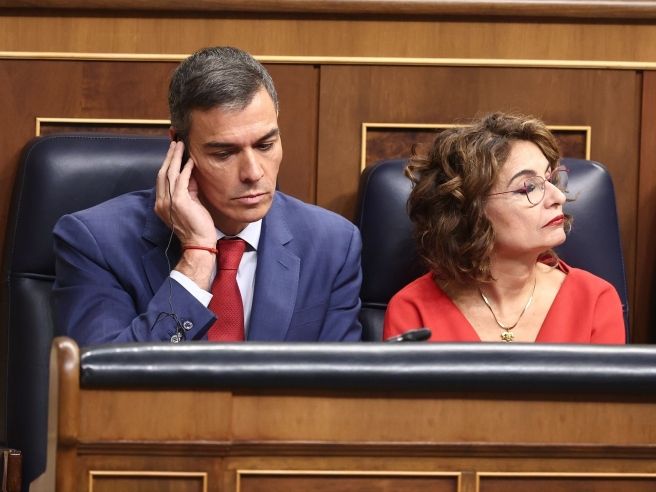 El presidente del Gobierno, Pedro Sánchez, y la vicepresidenta primera y ministra de Hacienda, María Jesús Montero. Eduardo Parra/Europa Press.