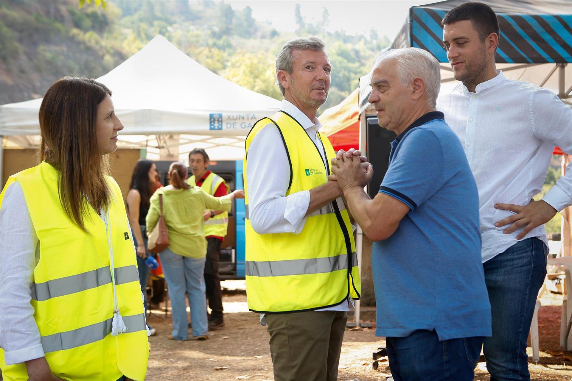 El líder de la Xunta, Alfonso Rueda, realizó una visita este jueves al Puesto de Mando Avanzado en Quiroga para monitorear los incendios forestales, en particular los de la provincia de Lugo. Acompañado por María José Gómez, conselleira de Medio Rural, y José Luis Rivera, alcalde de la localidad. Rueda indicó que actualmente hay cinco incendios activos en Galicia, destacando el de Carballeda de Avia, que también fue muy preocupante en su momento, diez días después de la declaración de la...