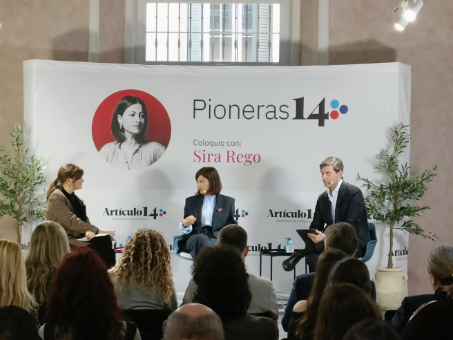 La ministra de Juventud e Infancia, Sira Rego, en un encuentro informativo de Artículo 14. EUROPA PRESS