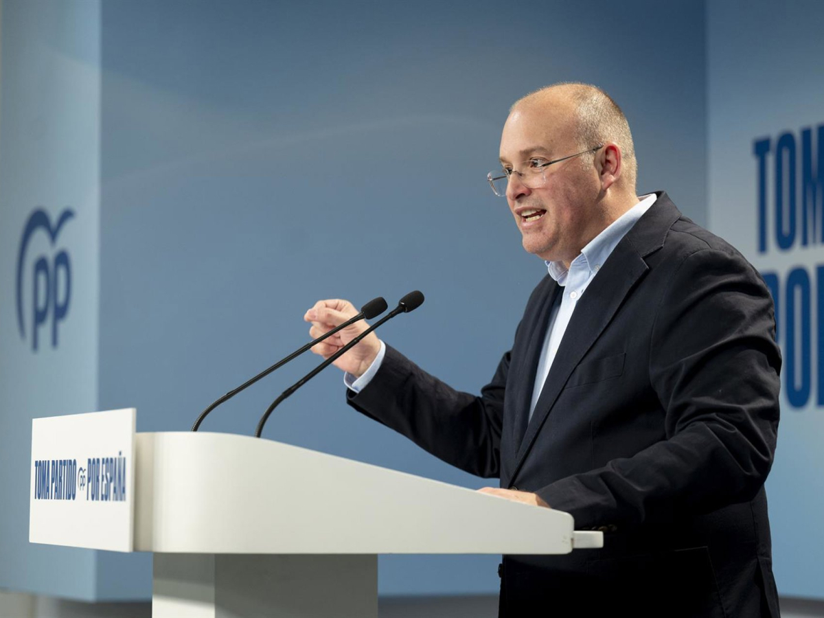 El secretario general del PP, Miguel Tellado, ofrece declaraciones a la prensa. Alberto Ortega - Europa Press