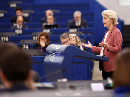 La presidenta de la Comisión Europea, Ursula von der Leyen, ante el pleno del Parlamento Europeo reunido en Estrasburgo (Francia). MATHIEU CUGNOT / PARLAMENTO EUROPEO