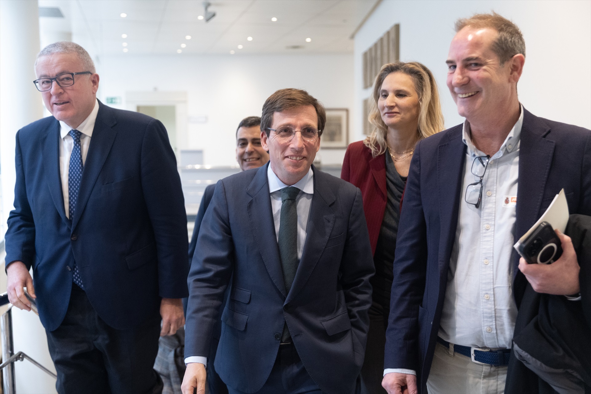 El alcalde de Madrid, José Luis Martínez-Almeida (c), a su salida de la comparecencia ante la Comisión de Vivienda y Agenda Urbana, en el Senado | Eduardo Parra / Europa Press
