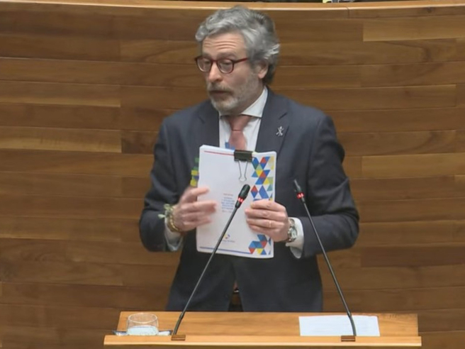 El parlamentario de Vox, Javier Jové, cargó contra el contenido del informe y reprochó que los principales objetivos fijados en la política educativa del Principado estén orientados a contribuir al cumplimiento de la Agenda 2030.
