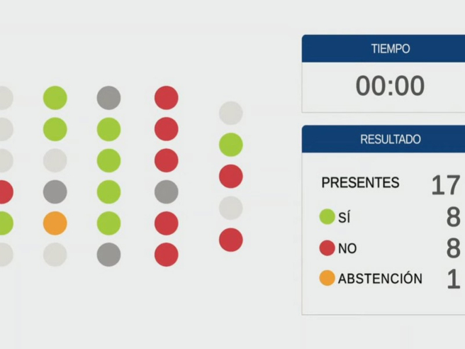La votación estuvo muy igualada: ocho apoyos (PP, Vox y el secretario general de Foro, Adriáon Pumares), ocho rechazos (PSOE y la diputada del Grupo Mixto Covadonga Tomé) y una única abstención, la del portavoz de Convocatoria-IU, Xabel Vegas. Tras realizar hasta tres votaciones con el mismo resultado y mantenerse el empate, la comisión dio finalmente por desestimada la iniciativa.