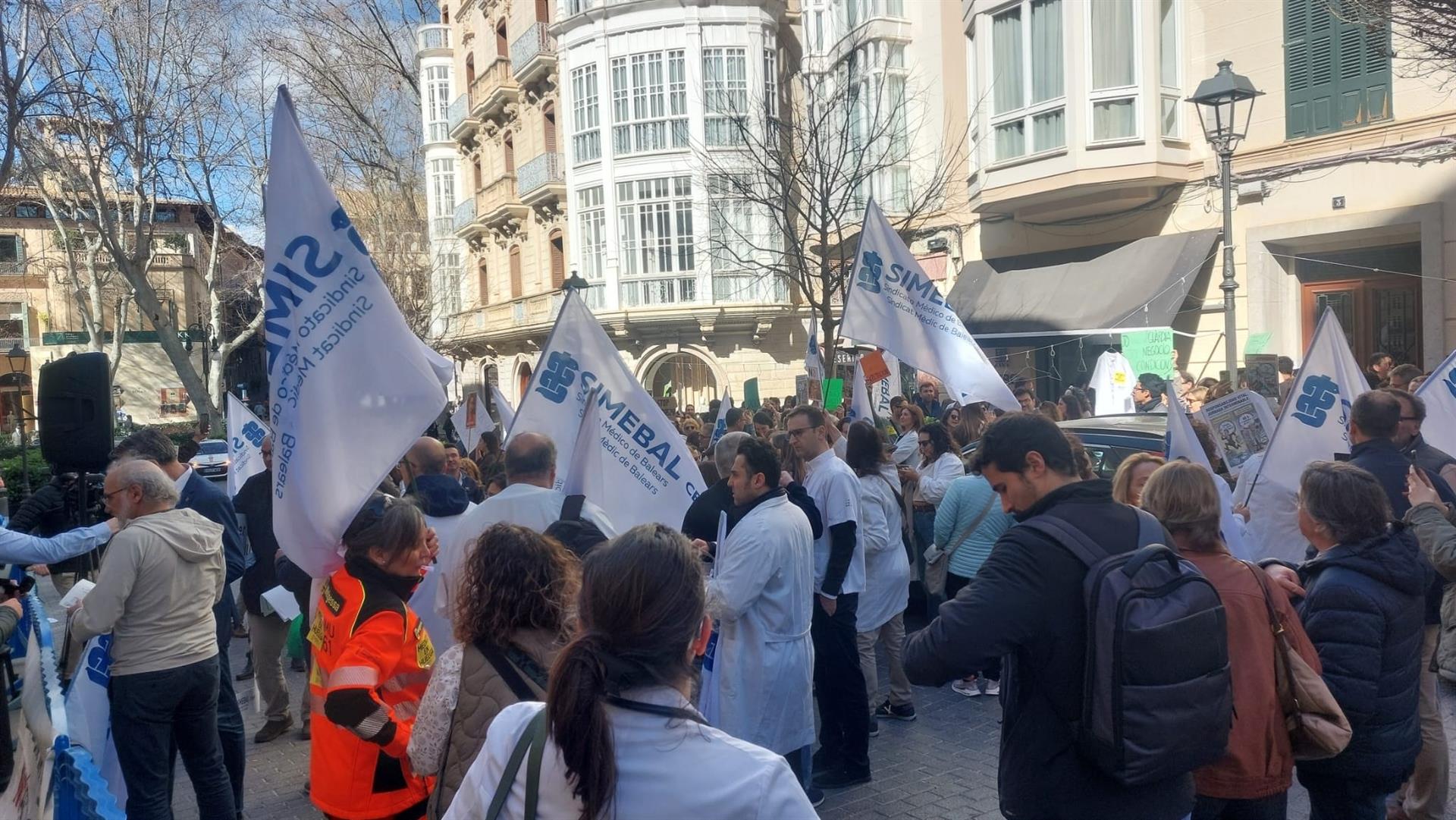 Unos 200 médicos se concentran en Palma tras la primera semana de huelga para rechazar el Estatuto Marco y exigir la dimisión de Mónica García.