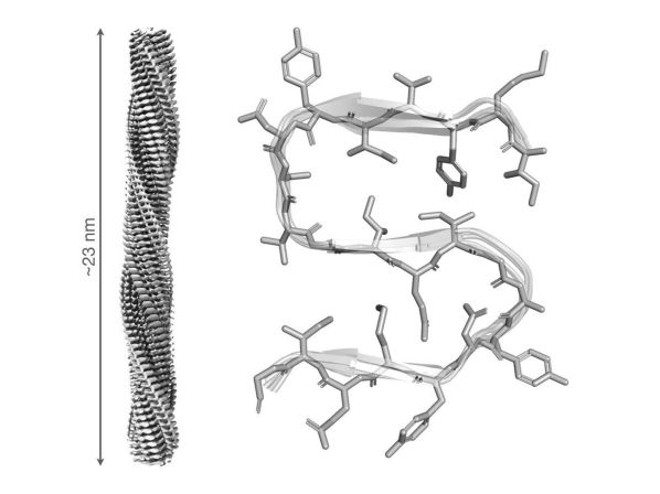 Para alcanzar estos descubrimientos, el equipo del IQF-CSIC, en colaboración con el Instituto de Biofísica (centro mixto CSIC-UPV/EHU), combinó RMN de biosólidos y criomicroscopía electrónica. “Gracias a la RMN de biosólidos, ha sido posible determinar la disposición precisa de los átomos de RIPK1 en el núcleo de la fibra, revelando cómo se organiza cada proteína a nivel atómico dentro del ensamblaje”, detalla el investigador.
