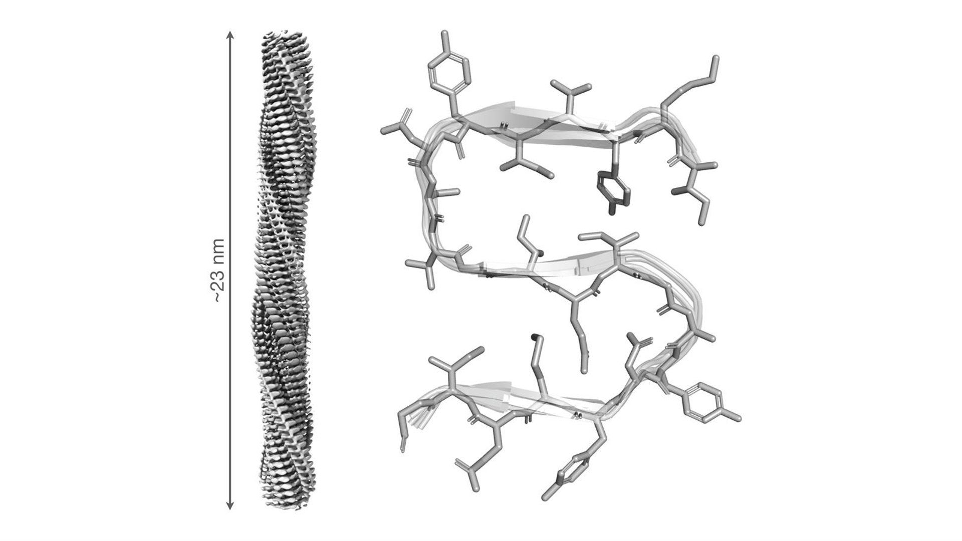 Para alcanzar estos descubrimientos, el equipo del IQF-CSIC, en colaboración con el Instituto de Biofísica (centro mixto CSIC-UPV/EHU), combinó RMN de biosólidos y criomicroscopía electrónica. “Gracias a la RMN de biosólidos, ha sido posible determinar la disposición precisa de los átomos de RIPK1 en el núcleo de la fibra, revelando cómo se organiza cada proteína a nivel atómico dentro del ensamblaje”, detalla el investigador.