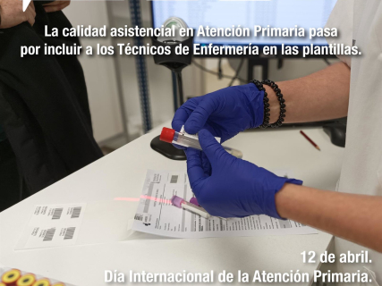 El Sindicato de Técnicos de Enfermería (SAE) sostiene que para garantizar una adecuada calidad asistencial en la Atención Primaria es imprescindible integrar a los técnicos en cuidados de Enfermería (TCE) en las plantillas, ya que su presencia en este nivel es casi inexistente en la actualidad.