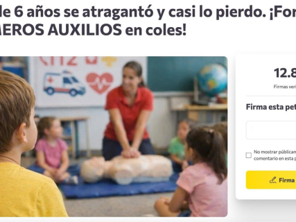 La plataforma ciudadana ‘Change.org’ ha comunicado que la petición para que los escolares reciban formación en primeros auxilios desde las aulas ha superado ya las 25.000 adhesiones. La iniciativa la ha lanzado una madre cuyo hijo estuvo a punto de morir el pasado mes de enero tras sufrir un atragantamiento.