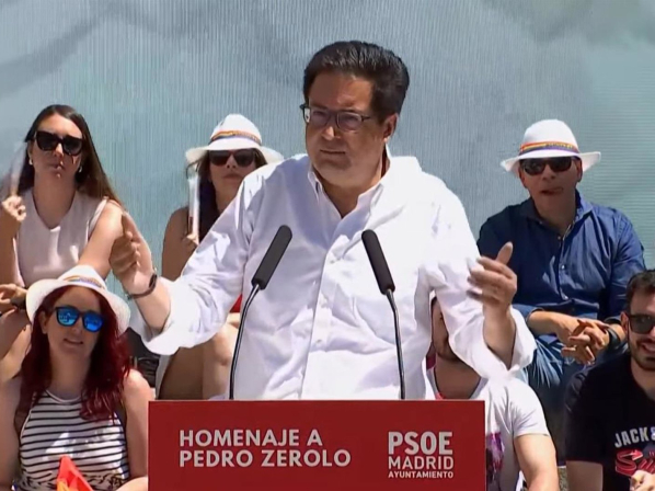 El secretario general del PSOE de Madrid y ministro para la Transformación Digital y Función Pública, Óscar López, durante una intervención en el homenaje a Pedro Zerolo cuando se cumple el décimo aniversario de su fallecimiento. EUROPA PRESS