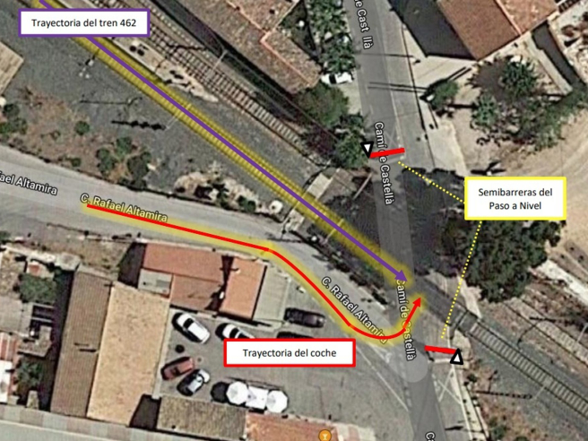 Consta, además, que en ese mismo punto se produjo un accidente el 17 de enero de 2006, con una víctima mortal, cuando un vehículo accedió al paso desde el lado opuesto y esquivó las semibarreras, aparentemente de forma intencionada. Asimismo, el 19 de marzo de 2007 otro coche entró de manera indebida, golpeando al tren que circulaba en ese momento, aunque sin causar heridos.