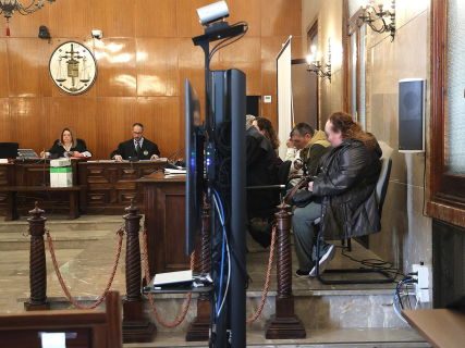 Los acusados por la muerta del bebé y sus abogados, al comienzo del juicio en la Audiencia Provincial de Baleares. Isaac Buj - Europa Press