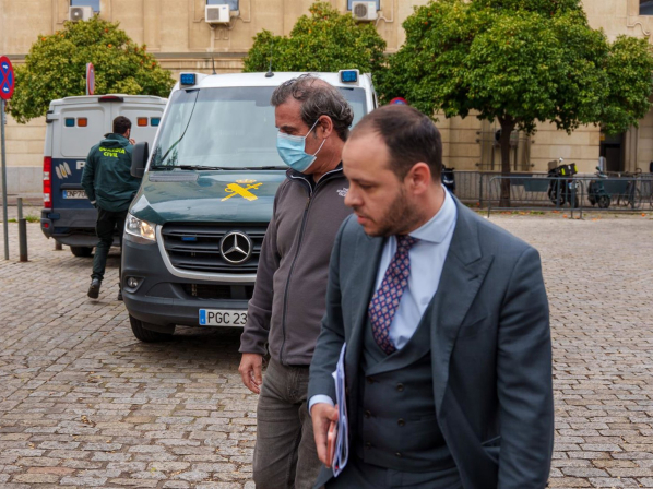 El exconcejal socialista Rafael Pineda, junto a su abogado, tras prestar declaración en la Audiencia Provincial. FRANCISCO J. OLMO- EUROPA PRESS